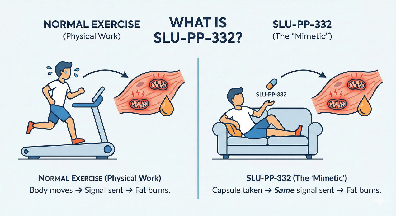 SLU-PP-332 enters your cells and targets a specific receptor called ERRα. This is the same receptor that usually only activates after 45+ minutes of intense cardio